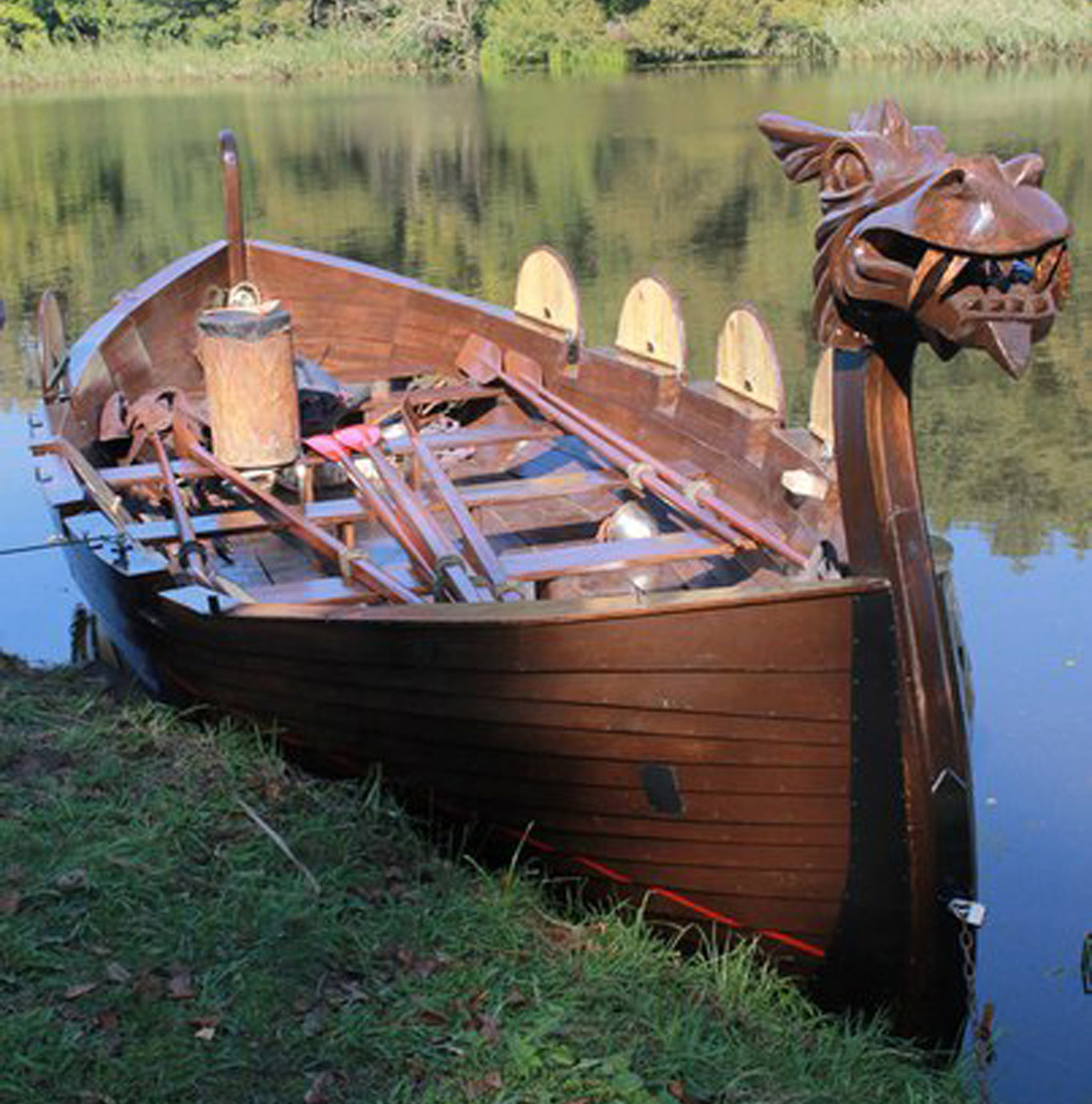 Имитация «ДРАККАРА» Викингов IX-XI веков. Ручной работы. Длина 9,3 м. Ширина 2,7 м. 8-ми весельное. Судовой билет № 00021170. Бортовой номер: АА2858. Год постройки: 2015. Материал корпуса: остов из пластика, обшит деревом. Кол-во людей на борту: 12 чел. (MAX- 20). Грузоподъемность : 1600 кг.